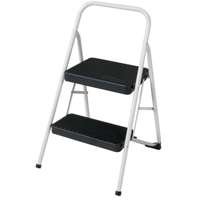 Two metal steps for strength, non-marring, skid resistant front leg tips and back guides. Opti-Bond powder finish, ribbed, slip resistant step treads. Convenient handle for carrying ease, continuous rear leg support for added strength. Meets ANSI Standards for Type II Medium Household Rating.